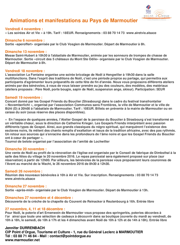 novembre 2016 Marmoutier Reutenbourg Dimbsthal Lochwiller Hengwiller manifestations animations