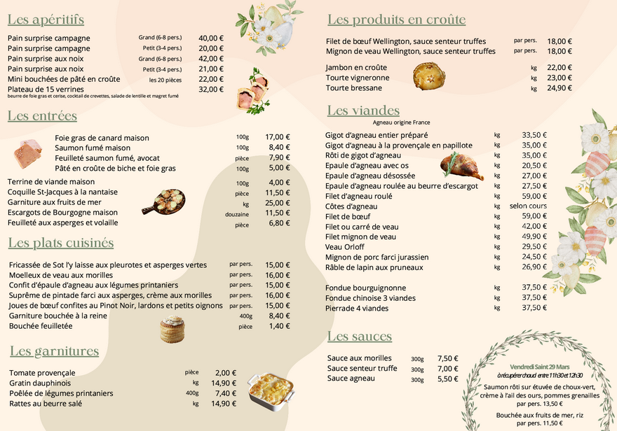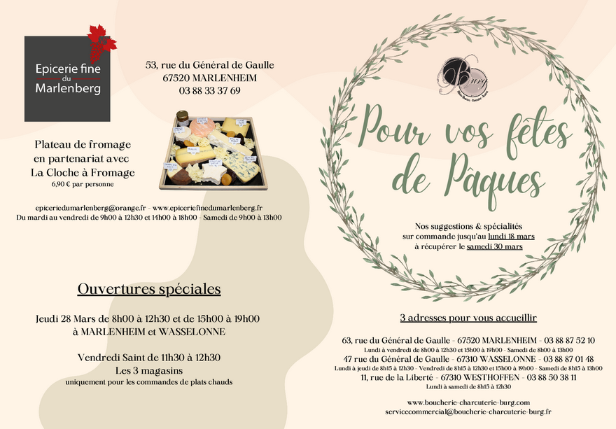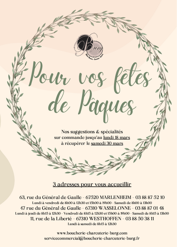 pâques 2024 wasselonne carte de menu pâques 2024 traiteur Burg pâques 2024 pâques 2024 westhoffen boucherie Burg Wasselonne Westhoffen