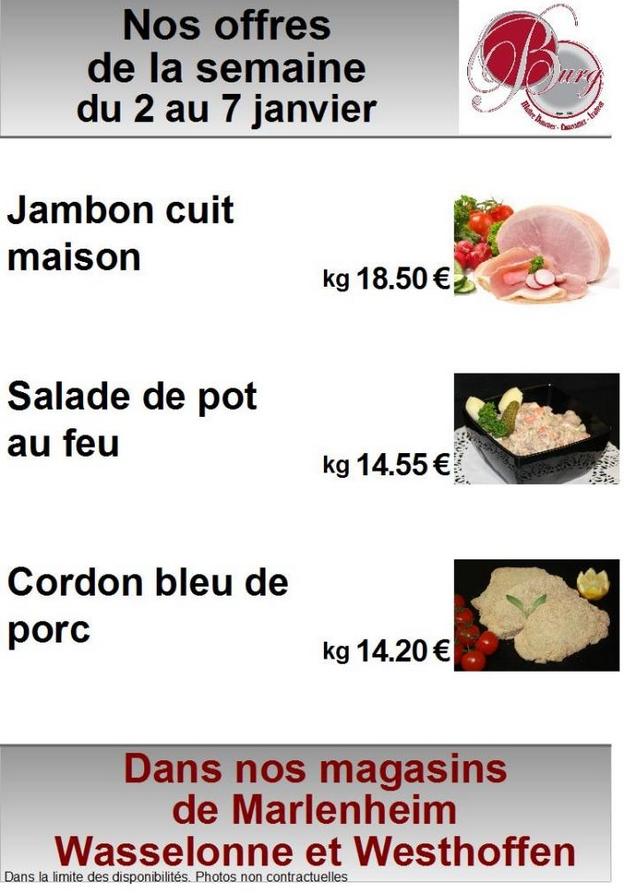 Boucherie-Charcuterie Burg - Wasselonne et Westhoffen Durée : Dans la limite des stocks disponibles Prix indiqué au kg