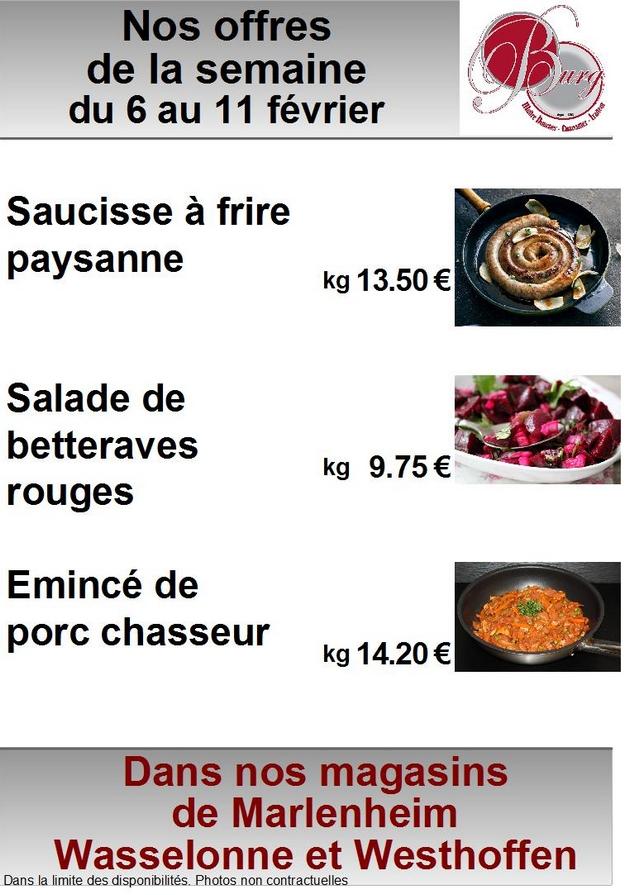 Boucherie-Charcuterie Burg - Wasselonne et Westhoffen Durée : Dans la limite des stocks disponibles Prix indiqué au kg