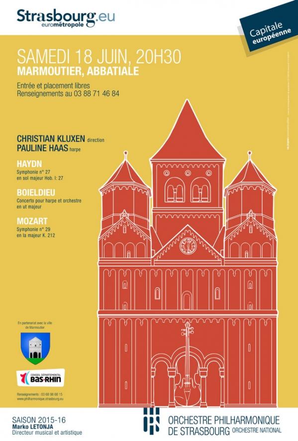 Concert de l’Orchestre Philharmonique de Strasbourg à 20h30 à l’abbatiale de Marmoutier.