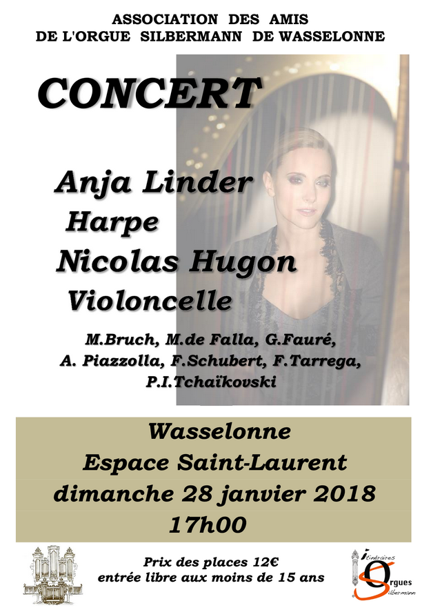 Par une force de caractère exceptionnel elle va reprendre sa carrière, aidée parla mise au point d'une harpe spécialement conçue pour elle. Reconnue par de nombreuses distinctions qui confirment l'excellence de son parcours elle développe désormais un style musical lumineux et inspiré. Les Amis de l'Orgue Silbermann de Wasselonne ont tenu à représenter une étape dans ce parcours et à lui donner carte blanche. Elle présentera le 28 janvier un programme très éclectique mêlant Piazzola, Tchaïkovski, Fauré, de Falla et Schubert. Elle sera magnifiquement accompagnée par un musicien lui-aussi exceptionnel, Nicolas Hugon, violoncelliste à l'Orchestre philharmonique de Strasbourg.