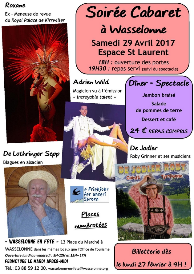 Roxane (ex-meneuse de revue au Royal Palace de Kirrwiller), le magicien Adrien Wild (vu à l’émission « la France a un incroyable talent »), de Jodler (Roby Grinner et ses musiciens) et de Lothringer Sepp (blagues en alsacien).